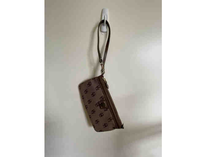 Dooney and Bourke Signature Wristlet in Brown Canvas with DB Logo