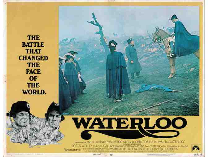 Waterloo, the 1970 Sergei Bondarchuk British/Italian/Russian historical French biography war starring Rod Steiger, Christopher Plummer, Orson Welles, Jack Hawkins, Virginia McKenna and Dan OHerlihy.
