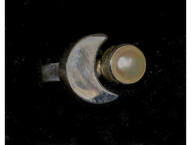 Ring, Moon Shaped, Adjustable, 95% pure silver with precious stones, by Cuban designer