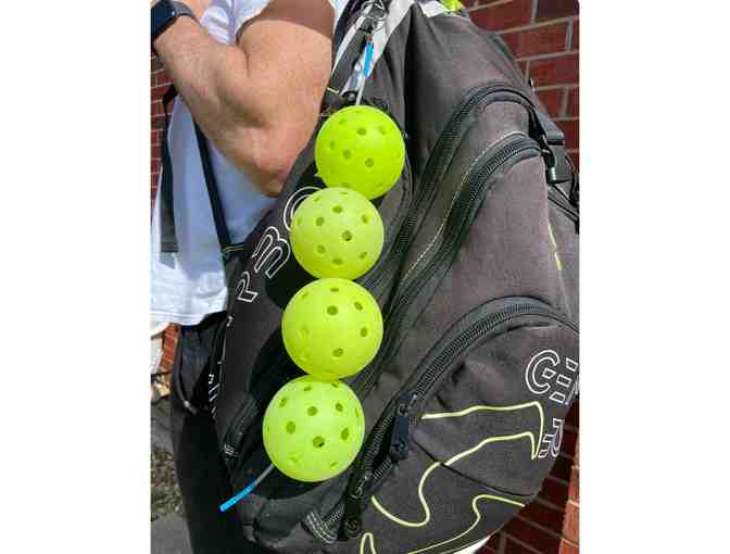 Stringer holds up to 6 pickleball’s (not included) Carabiner Hook used to hook to your pickleball bag.