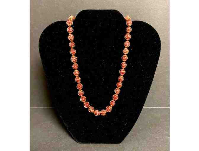 This beautiful necklace adjusts from 16-18" long and is made with red parisian glass beads. A lovely item for you ar someone special!