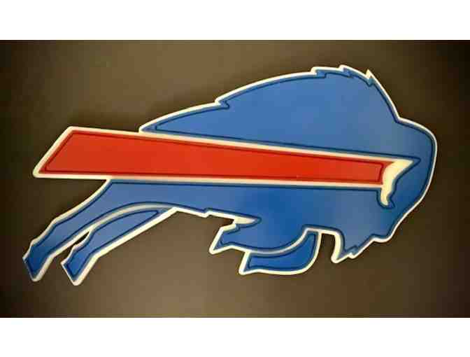 There will be no mistaking that you are a Bills fan when you hang this 40" x 20" handcrafted wooden Buffalo Bills logo sign in your Party Cave. Go Bills!!!