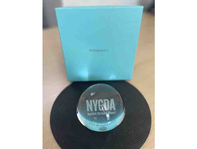 A Tiffany engraved paperweight bearing the NYCDA logo. A one of a kind item!