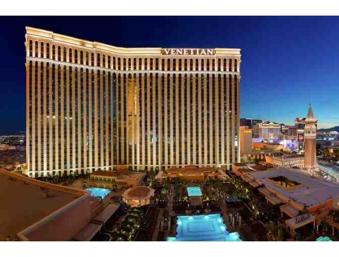 One night stay in a Venetian luxury king suite, $250 food and beverage credit, Venetian gift basket, and a certificate for a private gondola ride for 2.