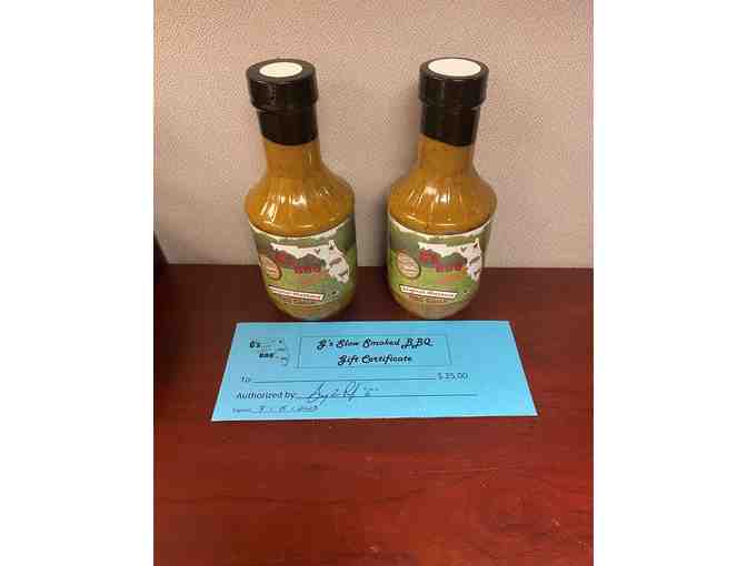 This gift from G's Slow Smoked BBQ includes two $25 gift cards and two bottles of their award-winning BBQ Sauce.