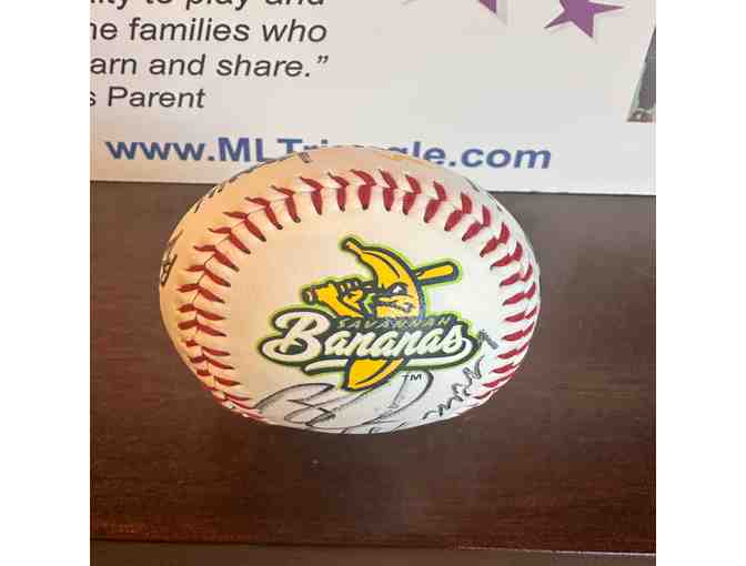 Savannah Bananas logo'd baseball signed by some of the members of the Savannah Bananas and Party Animal players and coaches.