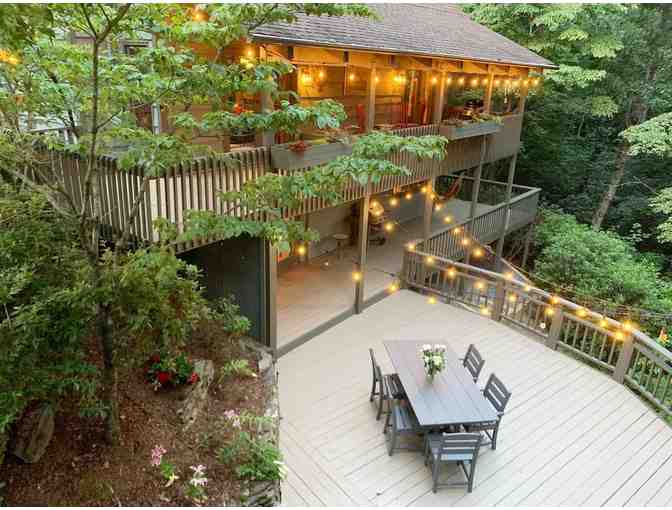 Beautifully designed, retro, but modern mountain cottage. Expansive outdoor spaces. Multiple large decks surrounded by nature. Fully stocked kitchen. Spacious dining room with additional outdoor seating for the warmer months. Two outdoor gas grills. Living room with gas fireplace and smart TV and an additional TV room downstairs.
