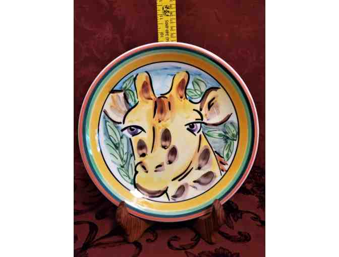 Jungle Spree handpainted 8.25" diameter decorative Giraffe plate. Made in Portugal. Collector's item. Plate stand included.