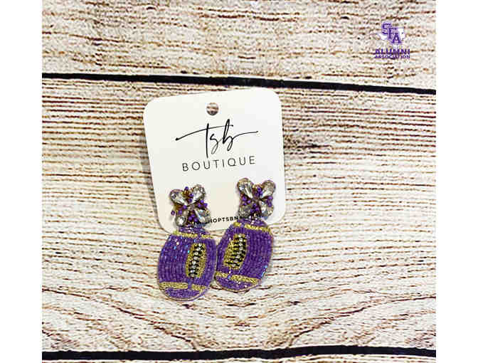 Show your Lumberjack Spirit wherever you go with these eye-catching purple beaded earrings!