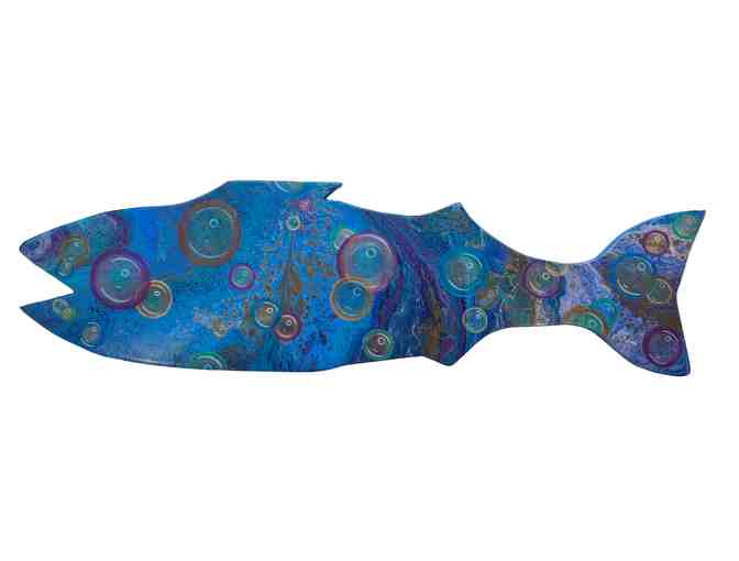 Bubble Bass | This bass was created using a multiple flip cup paint pour method. The bubbles were then painted with flat and metallic acrylic paints, and it was finished with an artists resin to create a shiny smooth finish.