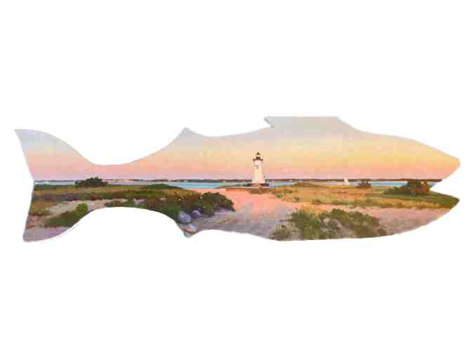 Sunset at Lighthouse Beach | The stroll to a great fishing spot in Edgartown brings one to the the Edgartown Lighthouse Beach. This scene is at sunset with the full moon rising.