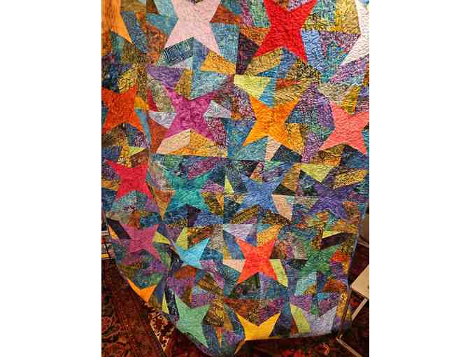 A 60 X 72 in. star-patterned quilt, handmade by Janice Overdorff.