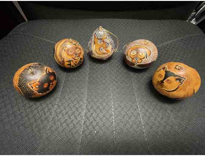 Bid today to get these stunning and one of a kind gourds with animals carved into them!