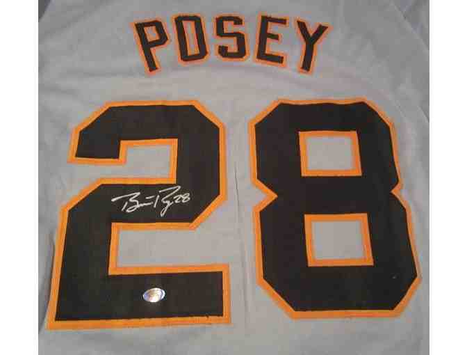 He attended Florida State University, where he began playing the catcher position. As a rookie, he was named the National League (NL) Rookie of the Year. He caught every inning of the playoffs as the Giants won the 2010 World Series. He became the second San Francisco Giant to win the batting title and was named the NL Most Valuable Player for 2012. He won his second World Series that year as the Giants swept the Detroit Tigers in four games. He won his third World Series the following year. Comes with certificate of authenticity.
