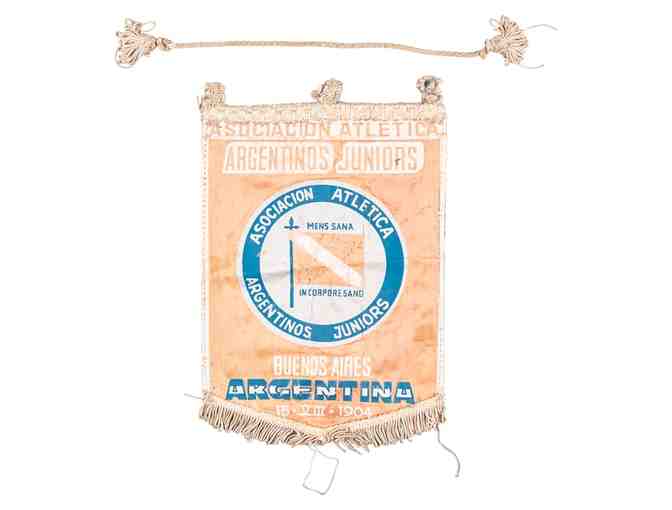 Diego Maradona Autographed Argentina Athletica Soccer Banner. Comes with certificate of authenticity.