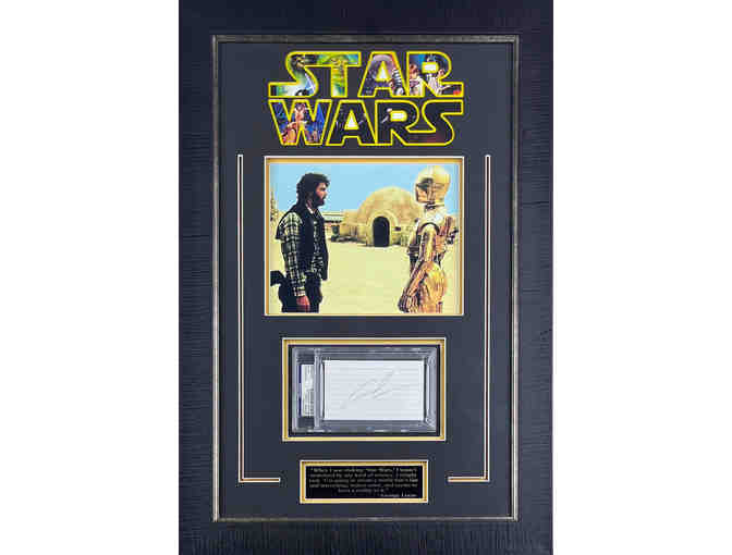 George Lucas Autographed Star Wars Display. Measures 18 3/4" x 27 3/4". Comes with certificate of authenticity.