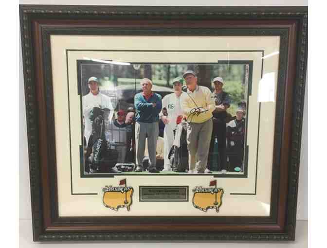 Jack Nicklaus Hand Signed Photograph at the 1996 Masters with Tiger & Arnie