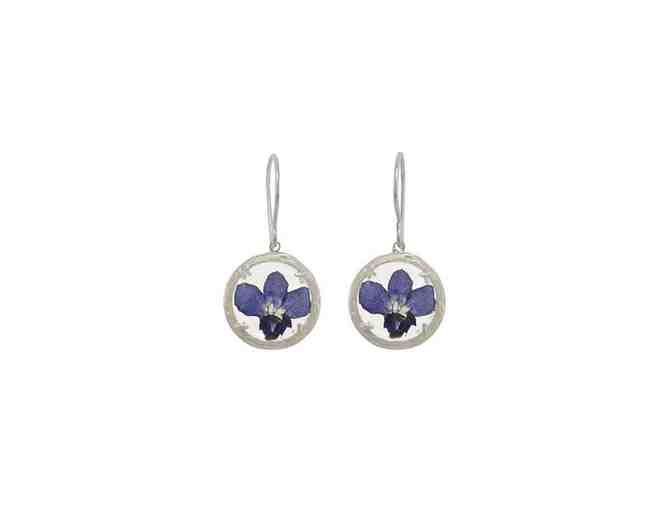 The natural beauty of an alpine meadow - delicate shapes and bright bursts of color - is captured in still life inside this two-sided glass chamber. These earrings are subtly enhanced by a frame of organically styled, softly textured branches. The tiny landscape of dried flowers brings the delight of discovery wherever they go. Handmade in Hawaii.