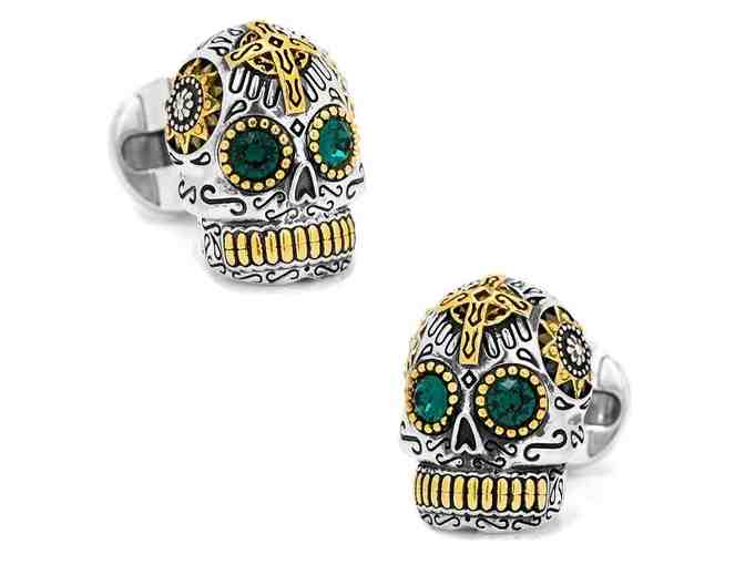 Sterling Silver and Gold Day of the Dead Skull Cufflinks