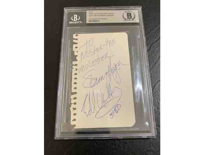 Van Halen Autographed Sheet with all four band members: Hagar, Anthony, Alex and Eddie Van Halen.
