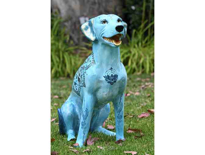 Adding an artistic touch to this Labrador's form is a beautiful gold mandala on her back, symbolizing wholeness, unity, and harmony. This mandala reflects the artistic essence of the Carmel community, where art and nature intertwine seamlessly. Gracefully positioned on her chest and behind her, the lotus blossom symbolizes purity, enlightenment, and resilience—qualities that Carmel holds dear, fostering a harmonious coexistence between residents and their four-legged companions.