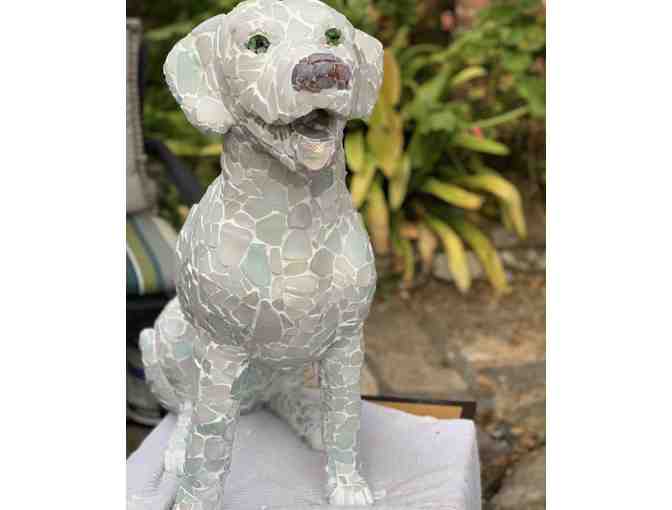 Meet “Glassie” our Dog of Carmel crafted entirely out of sea glass and abalone by local artist Ashley Bennett Stoddard. Each piece of sea glass used in this creation was lovingly collected from the sandy shores of our beloved coastline.