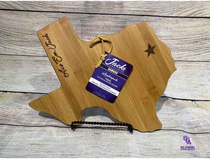 "Texas" Shaped Bamboo Cutting Board with "Axe 'em Jacks!" Logo
