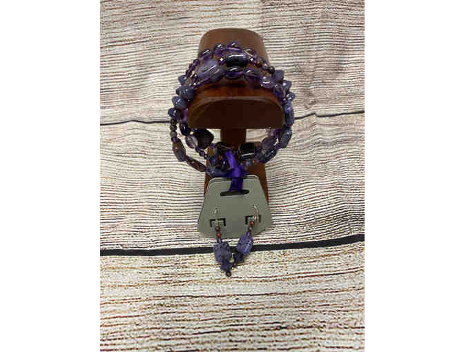 Purple Crazy Lace Agate and Amethyst Bracelet with Matching Crazy Lace Agate Earrings