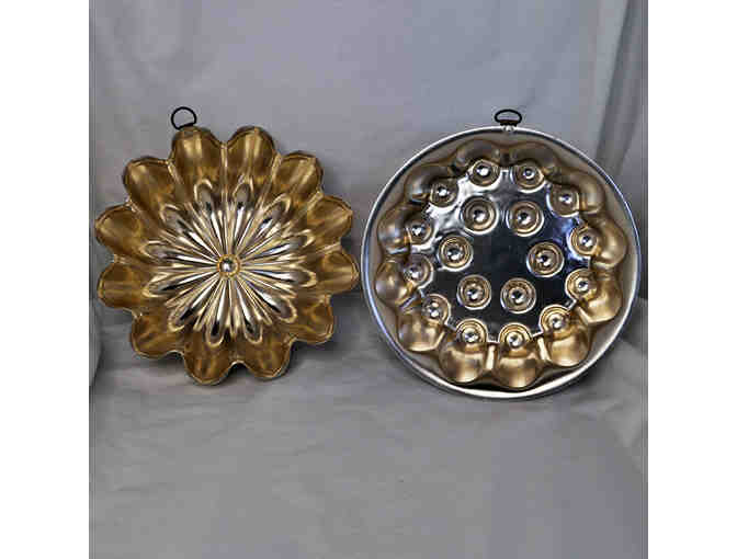 Two Round Vintage Jello Molds - Copper Colored Metal Farmhouse Decor Wall Hangings