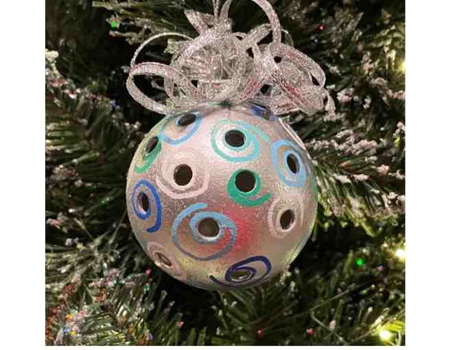 One-of-a-kind, custom-made ornament, from a pickleball that has seen action. What a unique gift for a pickleball-playing friend or treat yourself to one (or more!)