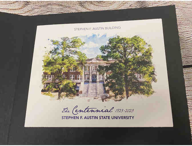 Only 100 of these prints IN EXISTENCE! Showcase this SFA watercolor print of the iconic Austin Building in your home, office, etc. to celebrate SFA's 100th Birthday!
