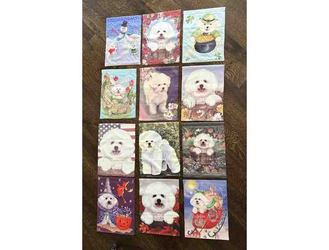 Set of 12 Bichon Garden Flags. Measure approximately 10 by 14 inches.