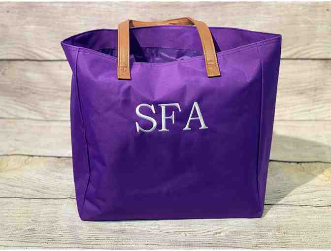 Attend your next event in style with this fashionable purple SFA emroidered tote!