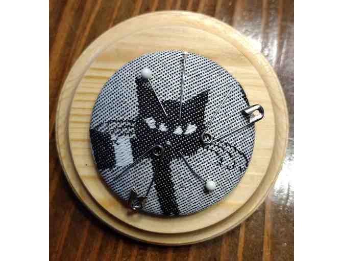 Magnetic domed top covered in a piece of a recycled baby sling.
