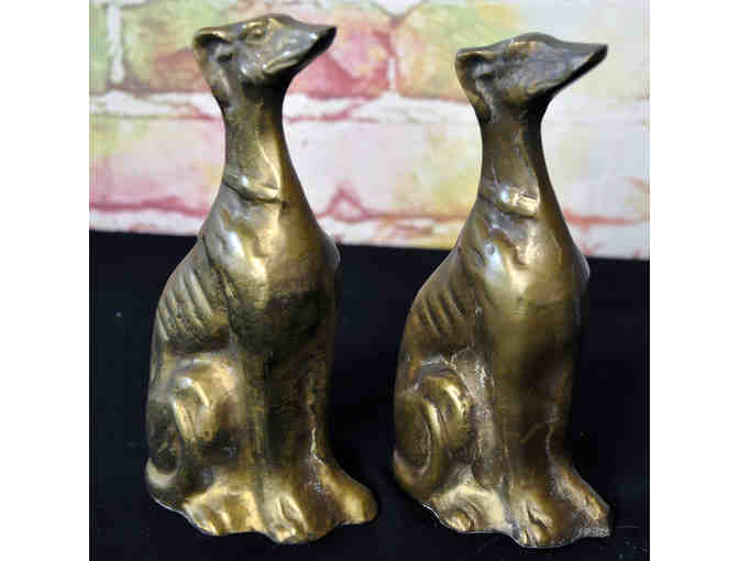 Vintage Greyhound/Whippet Sitting Dog Figurines - Bookends/Statue Pair - Brass