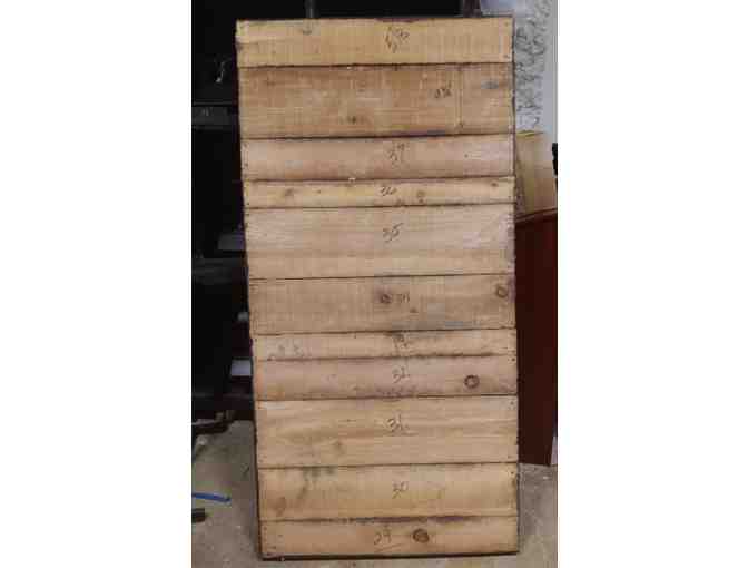 Material: Reclaimed Wood from 6A Stage (includes certificate of authenticity), wood burn on cedar, acrylic paint.