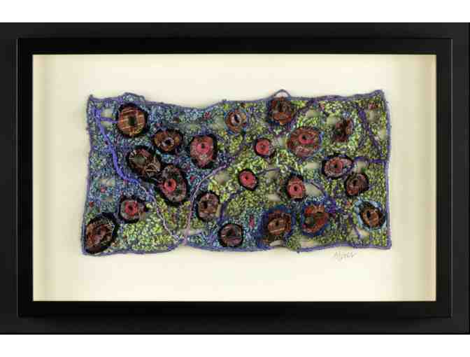 Master Fiber Artist, Barbara Jones, offers this one-of-a-kind handcrafted piece of mixed fiber art to a lucky winner!