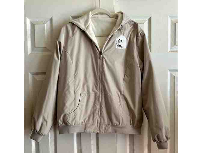 Jacket is well made with a few nice details: the zipper pull is a Bichon, embroidered Bichon head on left lapel on both the beige and off-white sides.