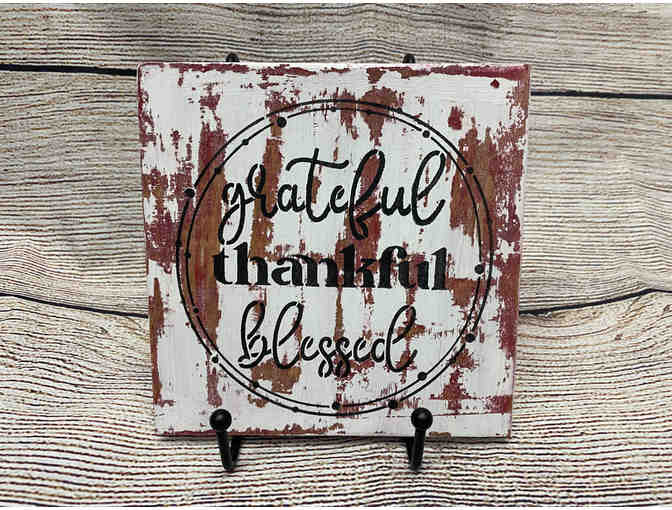 'Grateful, Thankful, Blessed' Wood Sign with Stand