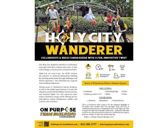 On Purpose Adventures has a team bonding package of scavenger hunts and other games that you cannot pass up... Check out the variety of team bonding experiences they have to choose from and bid today!