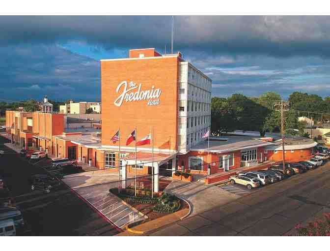 $100 to be used at Fredonia as F&B, at 1st City Cafe, or at Republic Steakhouse.