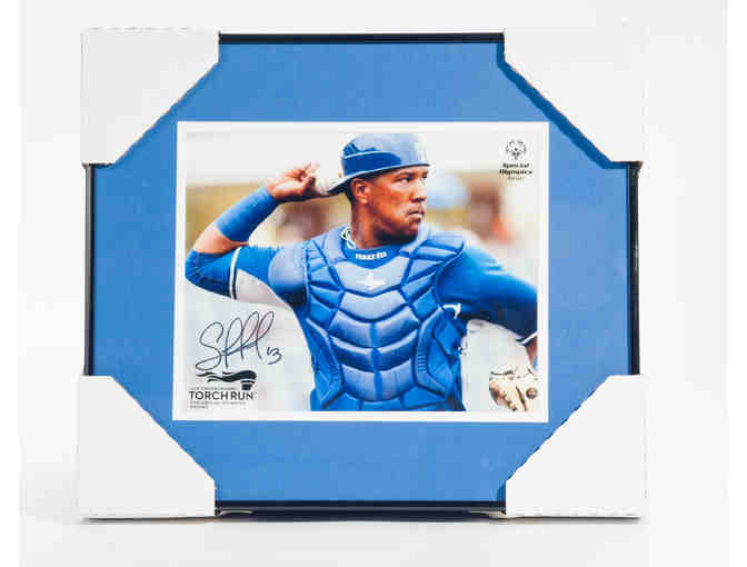 Kansas City Royals Catcher, Salvador Perez #13, signed photograph in a matted frame.