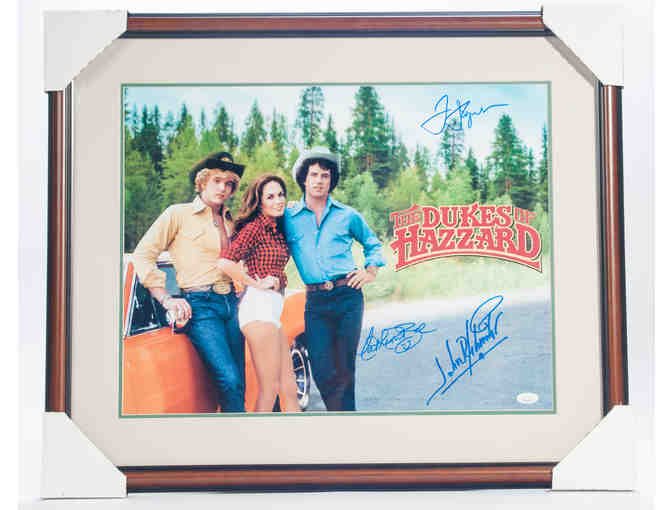 The Dukes of Hazzard photograph signed by three actors, framed and matted.
