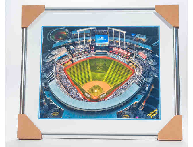 An areal view of Kauffman Stadium in matted frame