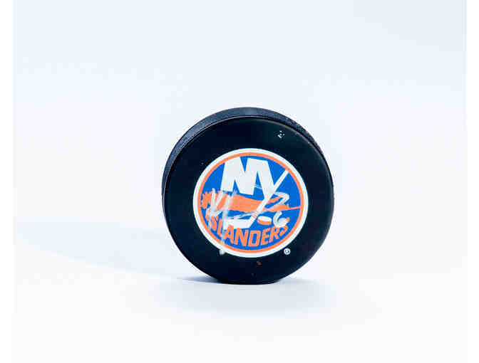 NY Islanders hockey puck signed by former player, Ken Morrow.