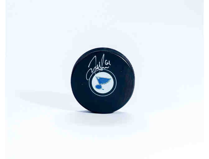 St. Louis Blues hockey puck signed by former player, Jacob de la Rose