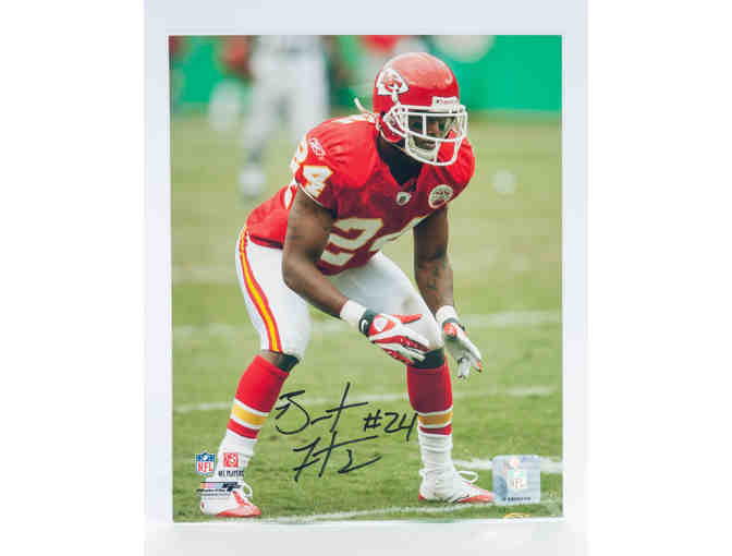 Brandon Flowers #24, former KC Chiefs cornerback, signed photograph in a protective sleeve.