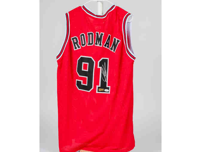 Chicago Bulls Basketball jersey signed by Dennis Rodman #91.