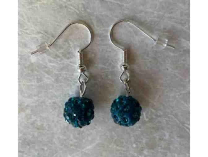 I39 "Disco Ball" Dangle Earrings, Dark Aqua Blue