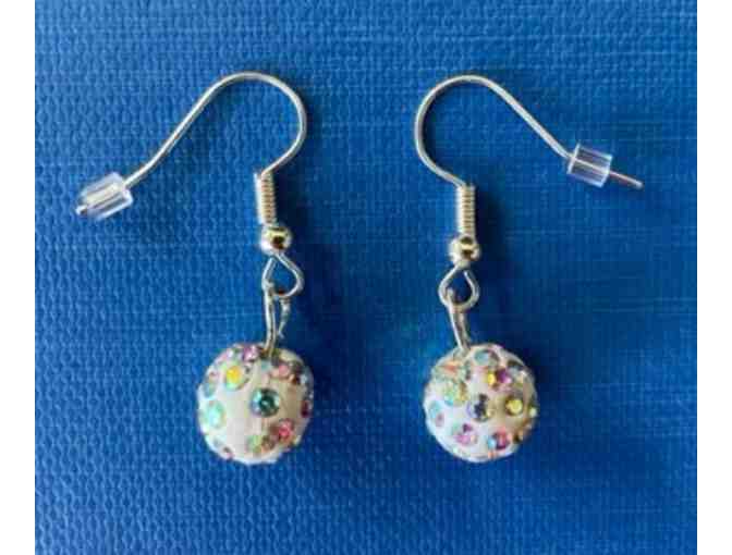 I33 "Disco Ball" Dangle Earrings, White